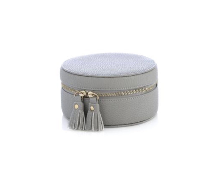 The Gigi round jewelry box is the needed travel accessory! Available in blush, gray or natural.