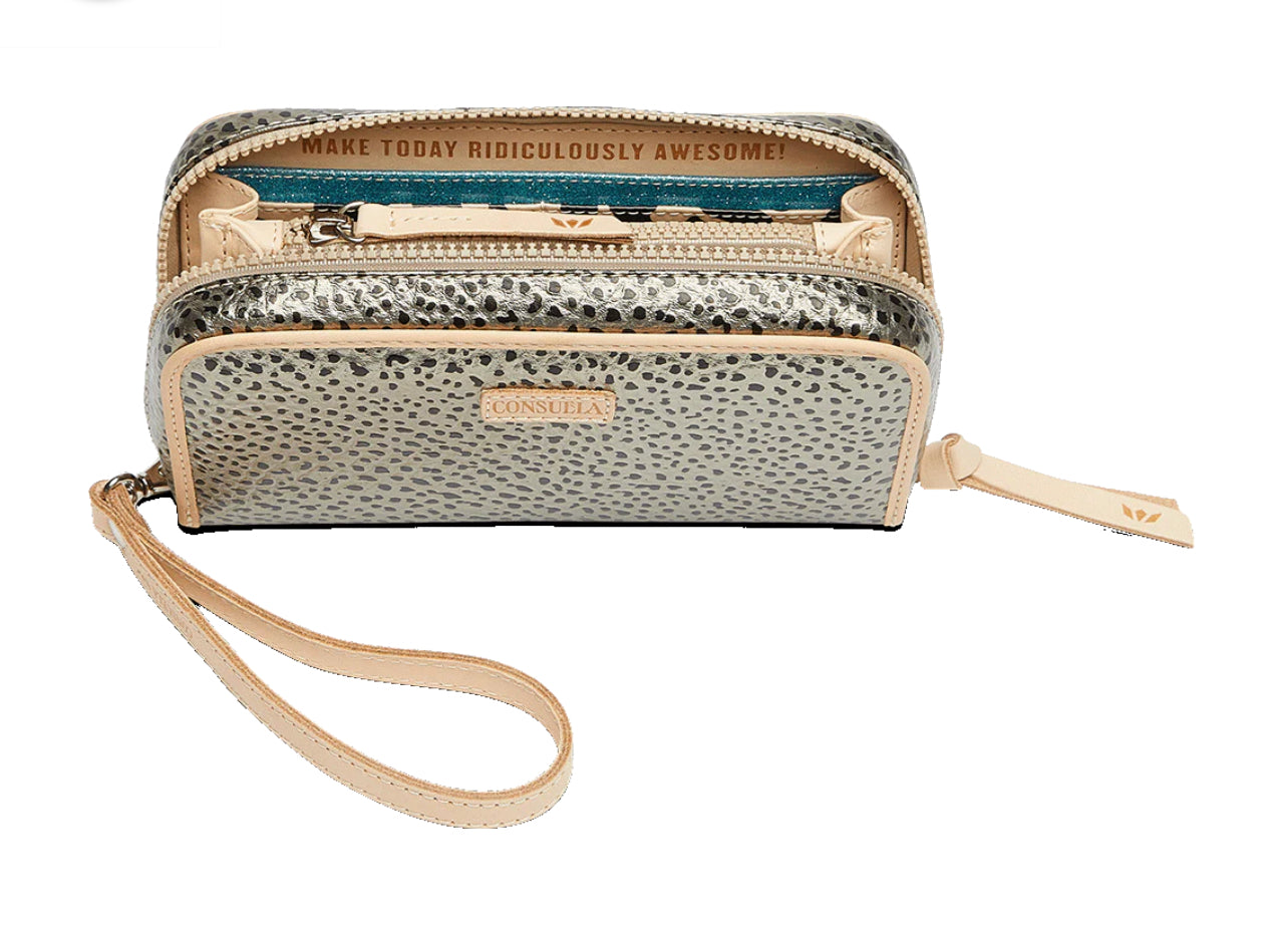 This accessory is functional for everyday use on its own or great for organization inside a larger bag. The Wristlet Wallet expands when unzipped to allow ample space for card organization and can be held by the included wristlet strap.